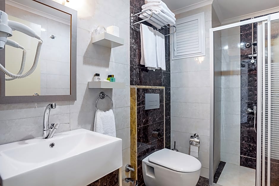 Providing free toiletries, this triple room includes a private bathroom with a shower, a hairdryer and slippers. This triple room is air-conditioned and features a flat-screen TV with satellite channels, a mini-bar, a wardrobe and a safe deposit box.